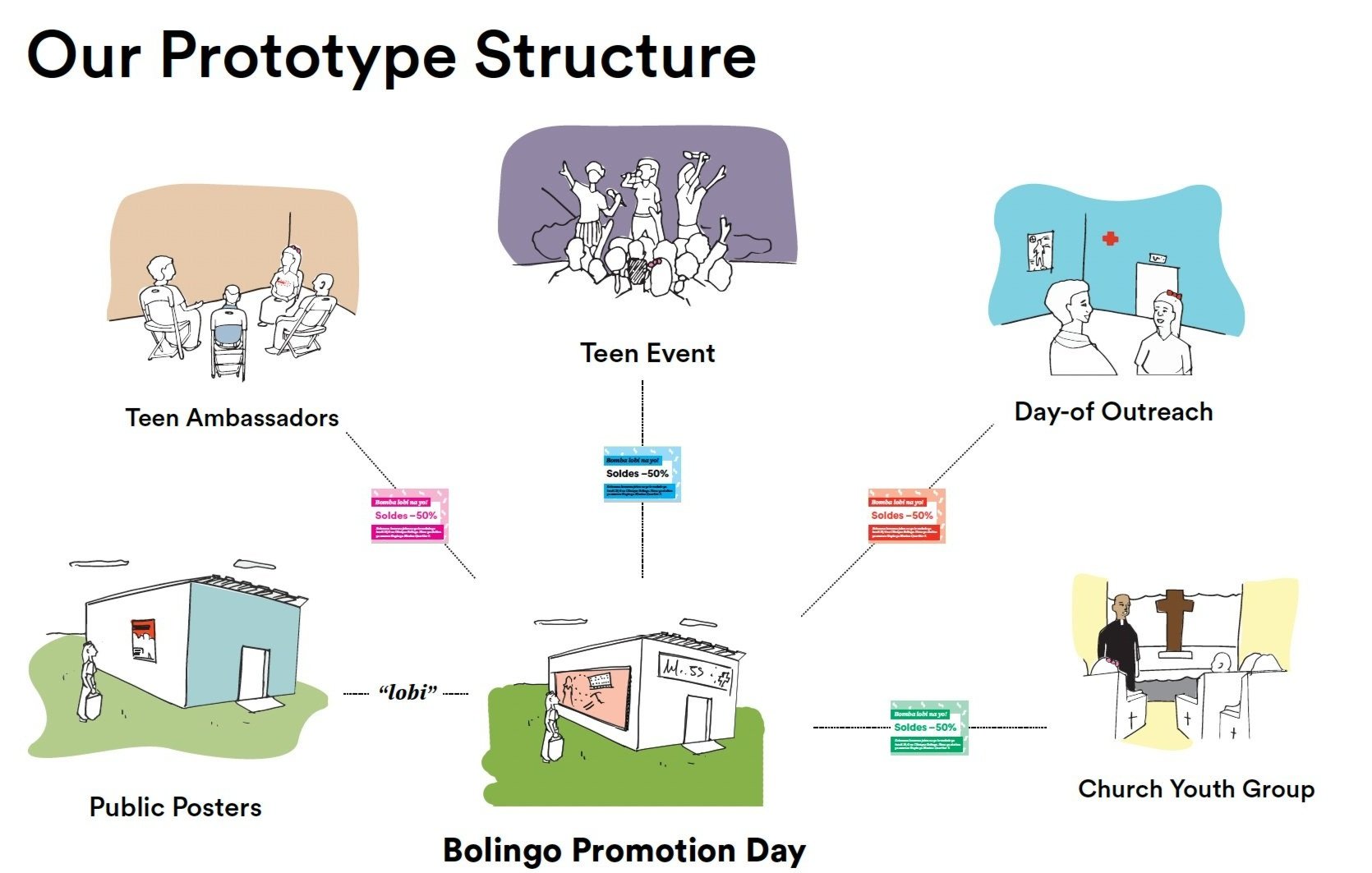 We created a set of vouchers, each color-coded to one outreach channel, and then ran promotions through each channel, funneling teens to a clinic day at a partner clinic, where consultations would be available with a voucher. We were able to use the color coding to understand which type of outreach had been most successful.